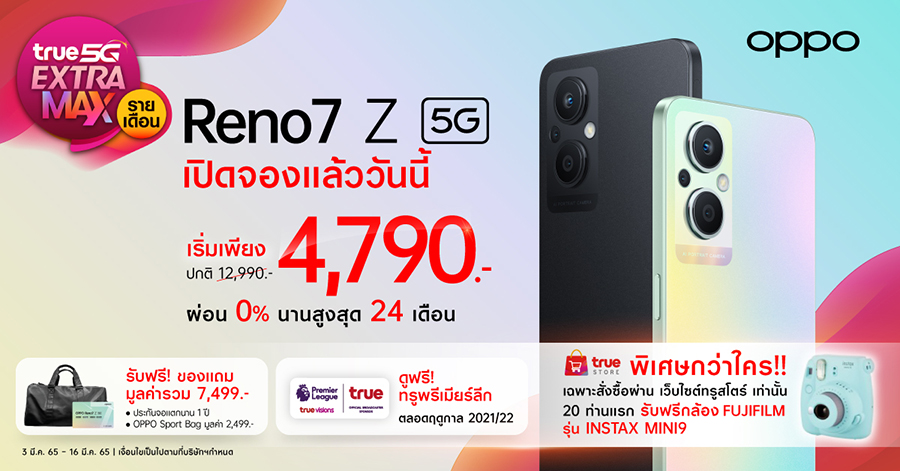 เปิดจองสมาร์ทโฟนใหม่ล่าสุด OPPO Reno7 Z 5G ในราคาสุดฮอต ลดสูงสุดถึง 8,200 บาท! พร้อมรับสิทธิพิเศษสำหรับลูกค้าทรู ตั้งแต่วันนี้ – 16 มีนาคมนี้