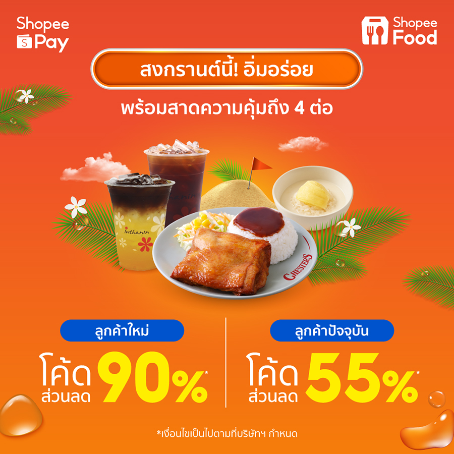 • อิ่มจุก ลดไฟลุก 50% เพียงซื้อ ShopeePay Vouchers 1 สตางค์ และชำระเงินหน้าร้านลดกว่า 50% อาทิ Auntie Anne's, Nong Pho Cafe, McDonald's, Shabushi และ Burger King