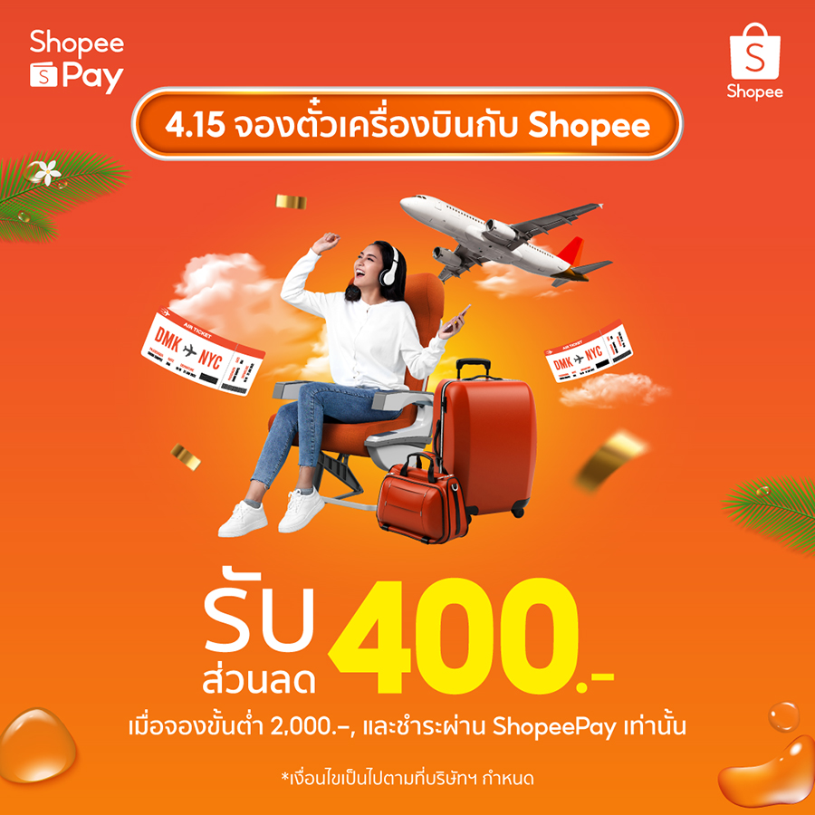 • หยุดยาวนี้ไปเที่ยวไหนดี? เปิดแอปพลิเคชันช้อปปี้ หาดีลเที่ยวสุดคุ้มอย่างสะดวกสบายเพียงปลายนิ้ว ไม่ว่าจะจองโรงแรม จองตั๋วเครื่องบิน รับส่วนลดสูงสุด 400 บาท พร้อมคุ้มอีกต่อ ด้วยโครงการเราเที่ยวด้วยกันกับเที่ยวบินที่ร่วมรายการ