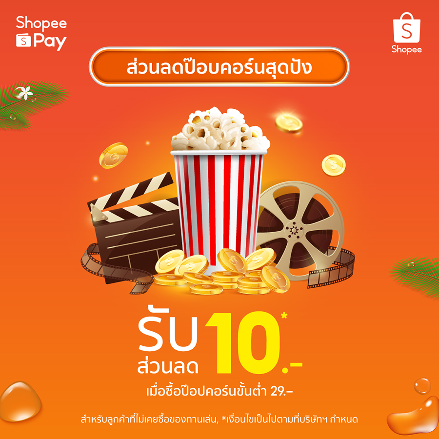 • พักผ่อนกับหนังเรื่องโปรด ดูยาว ๆ ช่วงวันหยุด พบกับโปรดูหนังราคากระชากใจ รับ Shopee Coins Cashback คืนสูงสุด 15% คู่กับโปรป๊อปคอร์นเริ่มต้นเพียง 19 บาท