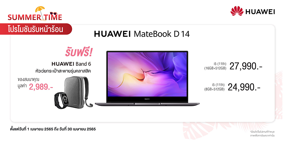- HUAWEI MateBook D 14 New รุ่น i5 11th Gen 8GB + 512GB ราคา 24,990 บาท