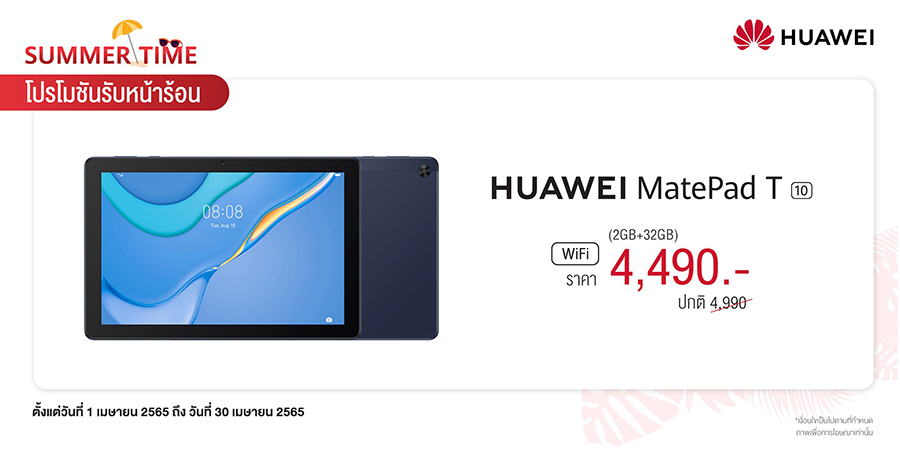 และยังมีแท็บเล็ตรุ่นน้องที่ออกแบบมาเพื่อตอบโจทย์ความต้องการของทุกคนในครอบครัว กับ HUAWEI MatePad T 10 หน้าจอ HD ขนาด 9.7 นิ้ว น้ำหนักเบา พกพาได้สะดวก รองรับเทคโนโลยีเสียง HUAWEI Histen 6.1 พร้อมเอาใจสายครอบครัวและลูกหลานกับฟีเจอร์เสริมทักษะการเรียนรู้ Kid’s Corner พร้อมโหมดการใช้งานที่ช่วยถนอมสายตาจากการลดแสงสีฟ้าบนหน้าจอ และยังมาพร้อมวิดีโอคอล MeeTime ให้ใช้ติดต่อสื่อสารกันระหว่างครอบครัวได้อย่างไร้รอยต่อ โดย HUAWEI MatePad T 10 (2GB + 32GB) ลดราคาเหลือเพียง 4,490 บาท จากราคาปกติ 4,990 บาท