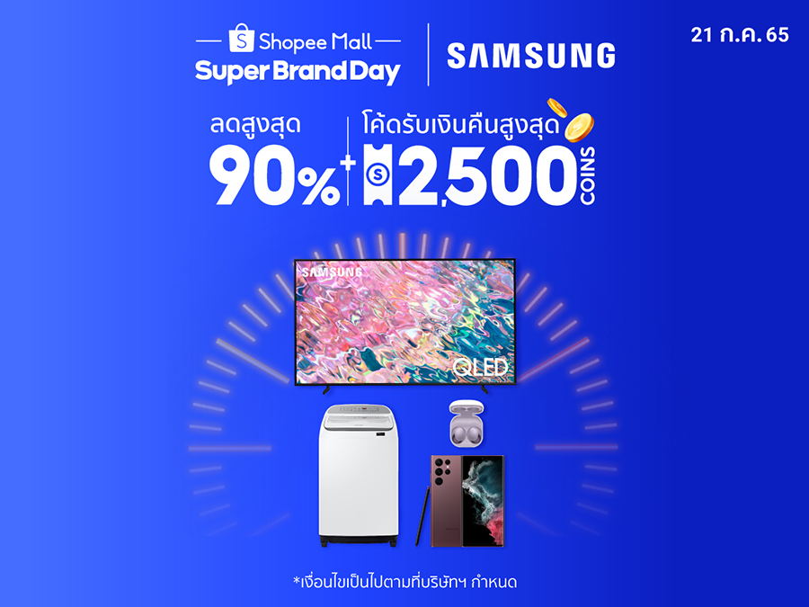ซัมซุง ร่วมมือกับช้อปปี้ขนทัพสิทธิพิเศษให้นักช้อปได้เพลิดเพลินไปกับ Samsung x Shopee Super Brand Day โดยลูกค้าสามารถรับข้อเสนอสุดพิเศษจากร้านค้าอย่างเป็นทางการของซัมซุงบน Shopee Mall ทั้งส่วนลดต่างๆ รวมไปถึงดีลสุดพิเศษของสินค้าใหม่ล่าสุด อย่างสมาร์ทโฟน อุปกรณ์เสริมต่างๆ ทีวี เครื่องเสียง และจอมอนิเตอร์ต่างๆ ที่สามารถเชื่อมต่อกับอุปกรณ์ภายในบ้านได้ นอกจากนี้ ซัมซุงยังพร้อมมอบข้อเสนอพิเศษกับสินค้าที่จะจัดจำหน่ายเฉพาะช่องทางออนไลน์อย่าง Samsung Q63B QLED 4K Smart TV 2022 และ Samsung Galaxy M Series อีกด้วย