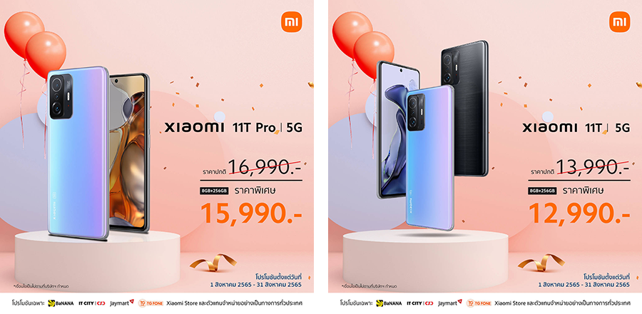 Xiaomi 11T Series ให้คุณได้มากกว่าด้วย กล้องเทพ แบตจุใจ หน้าจอใหญ่ หน่วยประมวลผลทรงพลัง ในราคาที่คุ้มกว่า! เป็นเจ้าของ Xiaomi 11T Series ได้แล้ววันนี้ที่ Xiaomi Store และร้านไอทีชั้นนำ ได้แก่ BaNANA, IT CITY, CSC, Jaymart และ TG FONE ในราคาที่คุ้มมากยิ่งขึ้น ตั้งแต่วันนี้ - 31 สิงหาคม 2565!