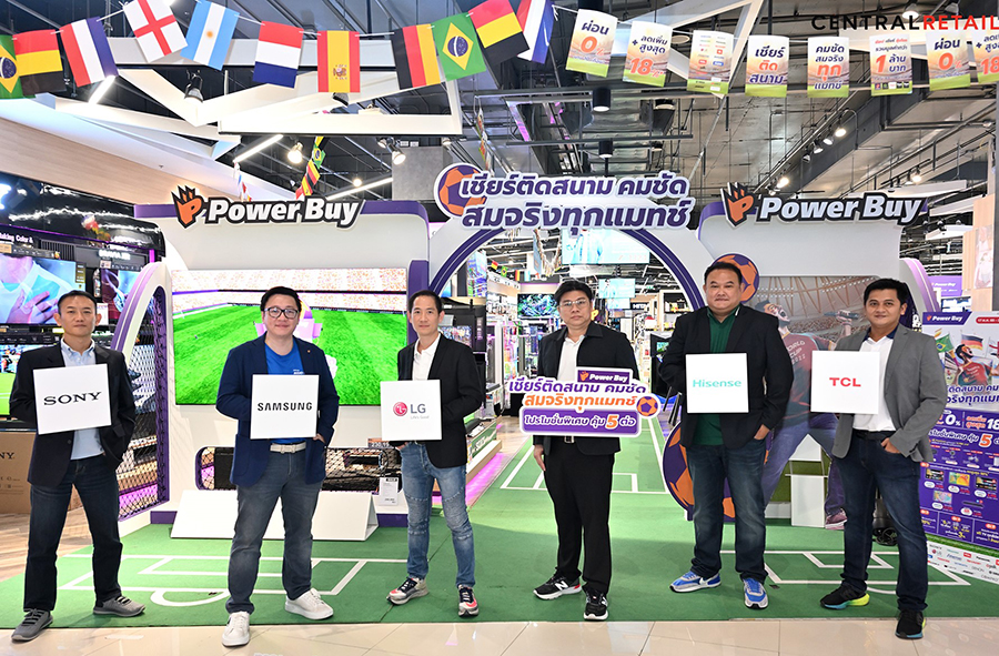 เพาเวอร์บาย (PowerBuy) ในเครือ เซ็นทรัล รีเทล โดย จิรสิน ศรีสุวนันท์ ผู้ช่วยกรรมการผู้จัดการใหญ่ฝ่ายจัดซื้อ Audio & Visual บริษัท เพาเวอร์บาย จำกัด เร่งเครื่องอัดแคมเปญ "เชียร์ติดสนาม คมชัด สมจริงทุกแมทช์" กระตุ้นกำลังซื้อสินค้ากลุ่มทีวี และเครื่องเสียง รับกระแสบอลโลก 2022 เสริมแกร่งด้วยการจับมือกับเหล่าพันธมิตรยักษ์ใหญ่ของวงการทีวี