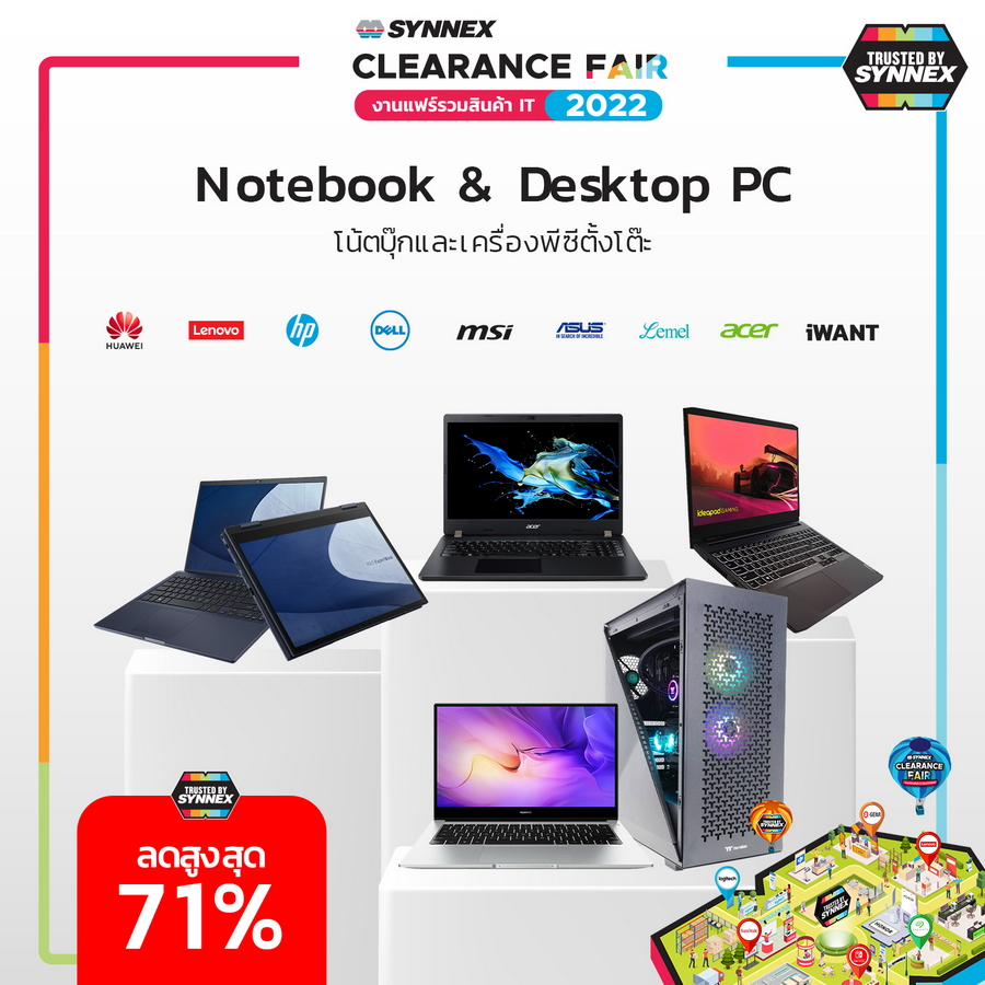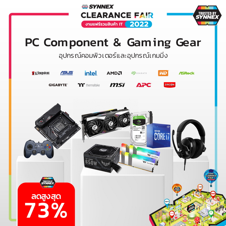 “SYNNEX Clearance Fair 2022” งานเด็ดส่งท้ายปีของ บริษัท ซินเน็ค (ประเทศไทย) จากัด (มหาชน) หรือ SYNEX ดิสทริบิวเตอร์ผู้นำด้านไอทีอีโคซิสเต็ม ที่เปิดบ้านยกทัพสินค้ากว่าพันรายการ มาจัดดีลราคาพิเศษให้สาวกไอทีซื้อสินค้าได้อย่างมั่นใจทั้งคุณภาพ และศูนย์บริการทั่วประเทศ ภายใต้สัญลักษณ์ Trusted by Synnex แบบจัดเต็ม ทั้งอุปกรณ์คอมพิวเตอร์ เกมมิ่ง แกดเจ็ท รวมถึงแอคเซสเซอรี่ และอื่นๆอีกมากมาย กับส่วนลดพิเศษสูงสุดมากกว่า 90%