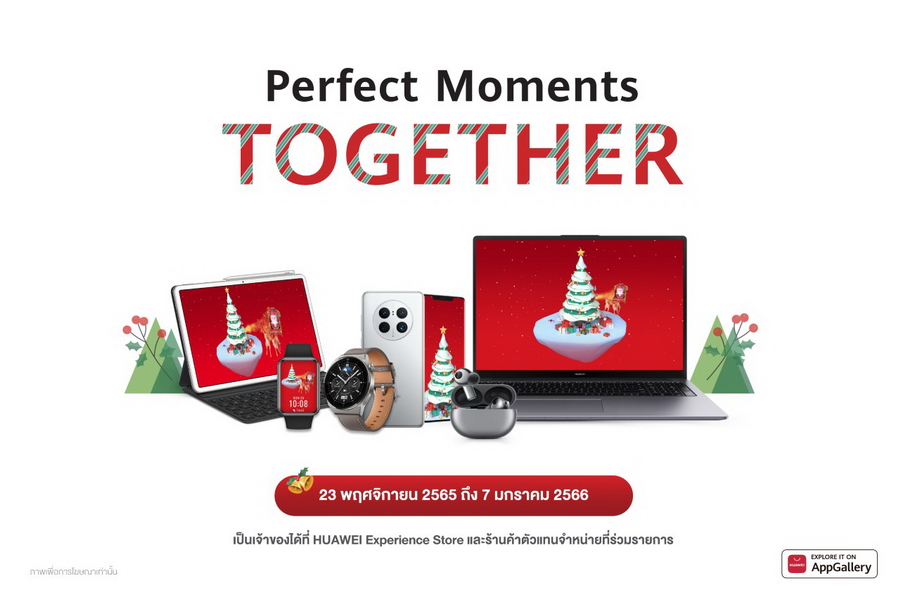 หัวเว่ย คอนซูมเมอร์ บิสสิเนส กรุ๊ป (ประเทศไทย) เฉลิมฉลองเทศกาลส่งท้ายปีอย่างยิ่งใหญ่ด้วยแคมเปญ Perfect Moment Together มอบโปรโมชันสุดคุ้มด้วยของสมนาคุณแบบจัดเต็มกันยาวๆ ตลอดปลายปีนี้ โดยยกขบวนสินค้ามาทั้งสมาร์ทโฟนเรือธงรุ่นล่าสุดที่เพิ่งวางจำหน่ายในประเทศไทยสดๆ ร้อนๆ อย่าง HUAWEI Mate 50 และ HUAWEI Mate 50 Pro ไปจนถึงสินค้าใหม่ที่เพิ่งเปิดตัวเร็วๆ นี้อย่างแท็บเล็ต HUAWEI MatePad SE10.4 สมาร์ทโฟน HUAWEI nova 10 Series และสมาร์ทวอทช์ HUAWEI WATCH GT 3 SE นอกจากนี้ ยังจัดโปรฯ พิเศษลดราคาสูงสุดถึง 2,000 บาท สำหรับสินค้ายอดนิยมที่ได้เสียงตอบรับอย่างล้นหลามในปีนี้อย่างแท็บเล็ต HUAWEI MatePad 10.4 สมาร์ทวอทช์ HUAWEI WATCH FIT 2 และลำโพงอัจฉริยะ HUAWEI Sound Joy เมื่อซื้อสินค้าที่หน้าร้าน HUAWEI Experience Store และร้านค้าอื่นๆ ที่ร่วมรายการ ตั้งแต่วันที่ 23 พฤศจิกายน 2565 ถึงวันที่ 7 มกราคม 2566
