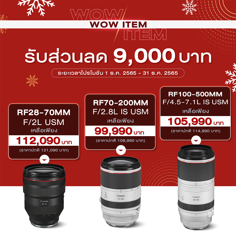 - RF28-70mm f/2L USM เหลือเพียง 112,090 บาท (ราคาปกติ 121,090 บาท)