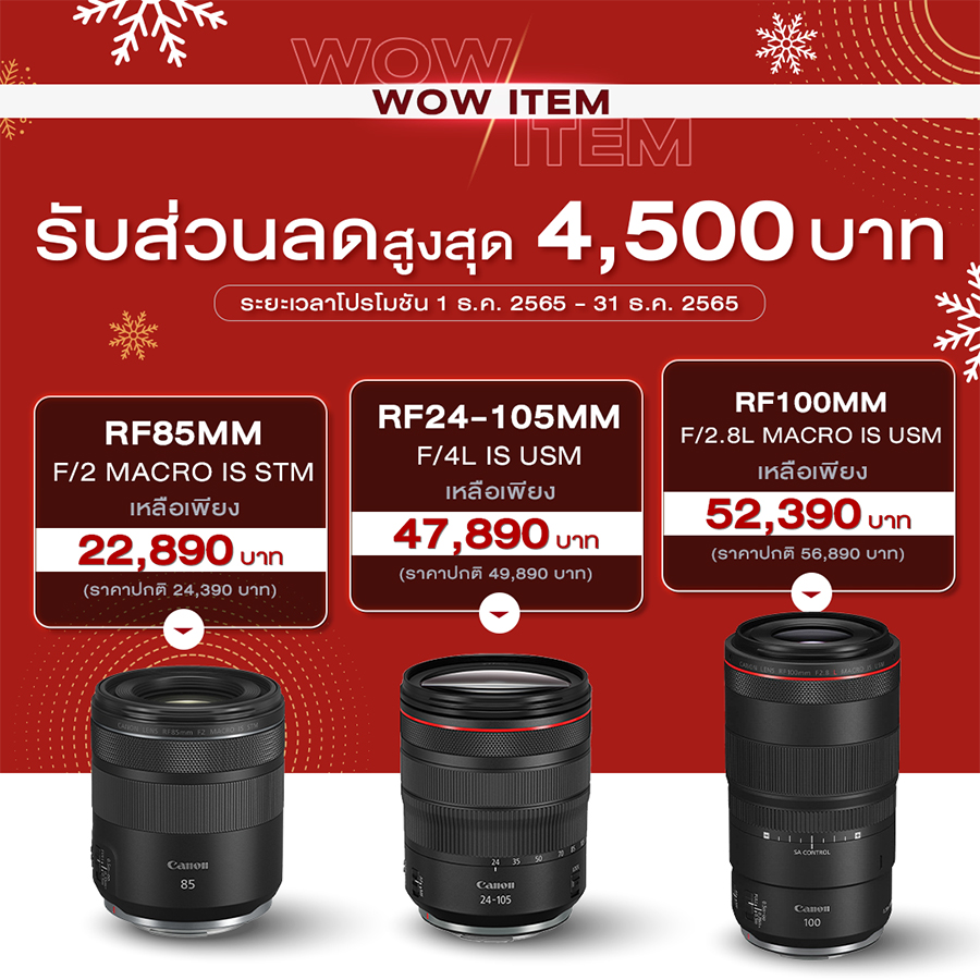 - RF85mm f/2 Macro IS STM เหลือเพียง 22,890 บาท (ราคาปกติ 24,390 บาท)
