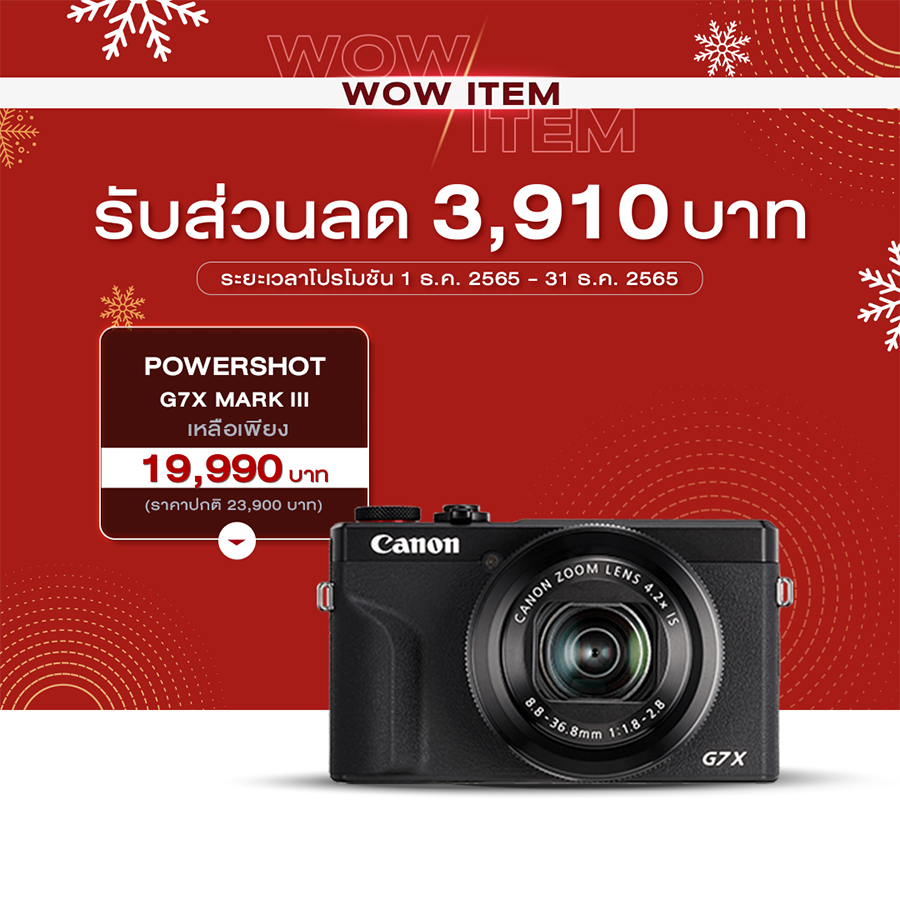 - PowerShot G7X Mark III เหลือเพียง 19,990 บาท (ราคาปกติ 23,900 บาท)