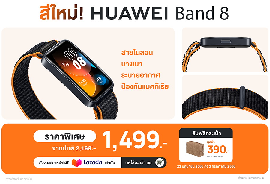 นอกจากนี้นักวิ่งจะได้พบกับ HUAWEI Band 8 สีใหม่ Vibrant Orange ครั้งแรกที่งาน Lazada Run พร้อมโปรโมชันพรีออเดอร์ในราคาเพียง 1,499 บาท จากราคาปกติ 2,199 บาท และสำหรับ 100 คำสั่งซื้อแรกรับฟรีกระเป๋า storage bag มูลค่า 390 บาท  เมื่อสั่งซื้อตั้งแต่ 23 มิถุนายน 2566 ถึง 3 กรกฎาคม  2566 ที่ร้านค้า HUAWEI Retail Store บน Lazada งานนี้รับรองว่านอกจากจะได้สนุกกับการวิ่งแล้วยังได้ส่วนลดแบบจุกๆ แน่นอน! พบกันที่งาน Lazada Run วันที่ 25 มิถุนายนนี้ 2566 ณ สนามกีฬาจุฬาลงกรณ์ฯ