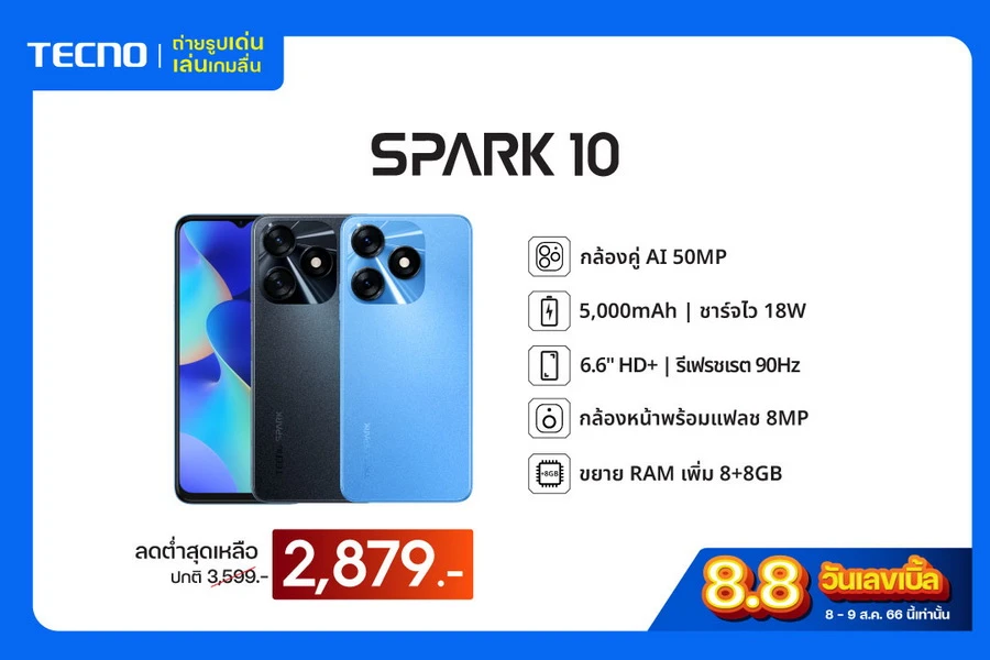 ♦ SPARK 10 ลดต่ำสุดเหลือ 2,879 บาท (จากราคา 3,599 บาท)