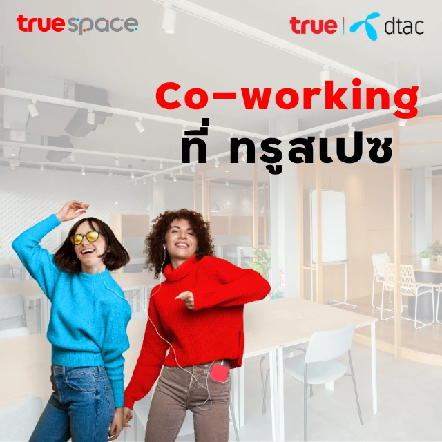 True Space โคเวิร์คกิ้งสเปซ พื้นที่ทำงานยุคใหม่ ที่ฉีกกฎรูปแบบเดิม ๆ ตอบโจทย์ทุกไลฟ์สไตล์ที่ต้องการพื้นที่อิสระ สร้างสรรค์ไอเดียได้แบบไร้ขีดจำกัด ทั้งยังสามารถจัดการระบบการทำงานด้วยตนเองได้อย่างเต็มที่ มาพร้อมกับสิ่งอำนวยความสะดวกครบครัน ทั้งเทคโนโลยี และสื่อดิจิทัล พร้อมเติมความสุข ให้ลูกค้า ทรู-ดีแทค เข้าใช้งาน สร้างสรรค์แรงบัลดาลใจใหม่ๆในการทำงานได้แบบ ไม่อั้น ทั้ง 7 สาขาทั่วประเทศ ทั้ง สยามเซ็นเตอร์ ซอย 2 (ชั้น 3 และชั้น 4) เซ็นเตอร์พอยท์ ออฟ สยามสแควร์ (ชั้น 4) อโศก ไอคอนสยาม (ชั้น 4) มหาวิทยาลัยรังสิต มหาวิทยาลัยมหิดล ศาลายา และวายสแควร์ฟู้ดมอลล์ อุบลราชธานี