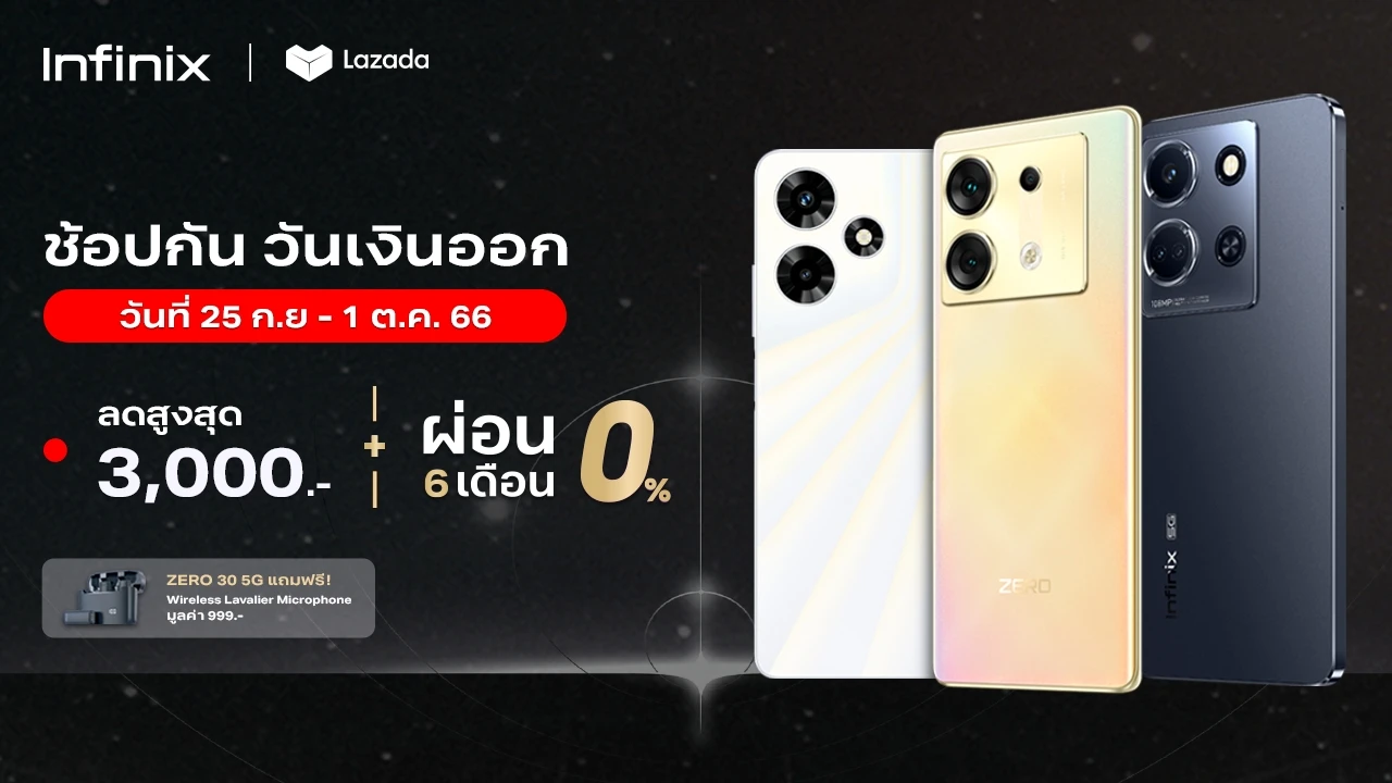 อินฟินิกซ์ (Infinix) แบรนด์สมาร์ตโฟนราคาคุ้มค่า ครบครันทุกการใช้งาน และตอบโจทย์ไลฟ์สไตล์คนรุ่นใหม่ จัดเต็มโปรโมชันส่งท้ายช่วงปลายเดือนกับแคมเปญ PAYDAY เอาใจเหล่านักช้อปออนไลน์และผู้ใช้งานทุกคน ให้สามารถเป็นเจ้าของสมาร์ตโฟนหลากหลายรุ่นยอดนิยม คุณภาพดี ในราคาที่ดีที่สุด คุ้มที่สุด อาทิ ZERO 30 5G, NOTE 30 Series 5G, NOTE 12 PRO 5G และ HOT 30 Series ด้วยการมอบส่วนลดสูงสุด 3,000 บาท* พร้อมรับข้อเสนอพิเศษผ่อน 0% นาน 10 เดือน* เมื่อซื้อสินค้าที่ร่วมรายการ โดยสามารถซื้อสินค้าได้ที่ร้าน Infinix Official Store บน Shopee, Lazada และ TikTok Shop