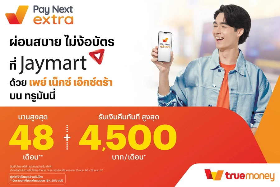 ทรูมันนี่ ผู้นำด้านการให้บริการทางการเงินแบบดิจิทัลชั้นนำในภูมิภาคเอเชียตะวันออกเฉียงใต้ ร่วมกับบริษัท แอสเซนด์ นาโน จำกัด จับมือ เจมาร์ท โมบาย (Jaymart Mobile) ผู้นำประกอบธุรกิจจัดจำหน่ายมือถือและอุปกรณ์เสริม เอาใจสายแกดเจ็ต ให้สามารถผ่อนชำระสินค้าได้แบบสบาย ๆ ผ่านวงเงินพร้อมใช้ เพย์ เน็กซ์ เอ็กซ์ตร้า (Pay Next Extra) บนแอปทรูมันนี่ได้เป็นครั้งแรก เพื่อตอบโจทย์ไลฟ์สไตล์ยุคดิจิทัล พร้อมเพิ่มทางเลือกและอำนวยความสะดวกด้านการชำระเงินในการซื้อสินค้าและบริการให้แก่ผู้ใช้งาน พร้อมส่งแคมเปญพิเศษ รับเงินคืนสูงสุด 4,500 บาทต่อเดือน* และรับอั่งเปาส่วนลดจากเจมาร์ทรวมมูลค่ากว่า 1 ล้านบาท เมื่อใช้บริการ เพย์ เน็กซ์ เอ็กซ์ตร้า ซื้อสินค้า ณ ร้านเจมาร์ททั่วประเทศ ตั้งแต่วันนี้ จนถึง 29 ก.พ. 2567 นี้