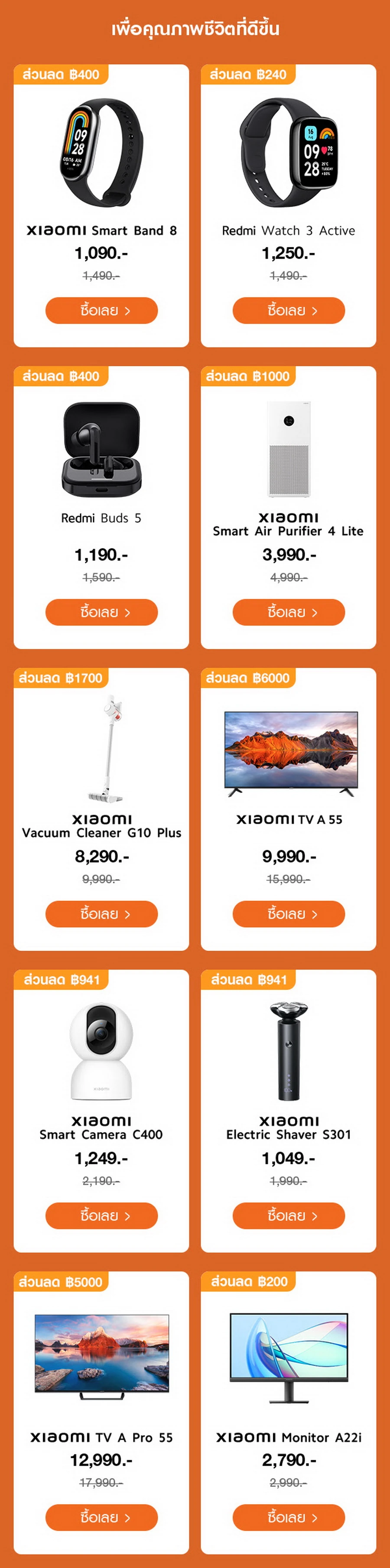 Xiaomi จัดโปรโมชันต้อนรับเปิดเทอม เข็นกองทัพสมาร์ทโฟน เครื่องใช้ไฟฟ้า และ Gadget มากมาย พบกับสินค้าราคาพิเศษ พร้อมรับส่วนลดสูงสุดถึง 56%