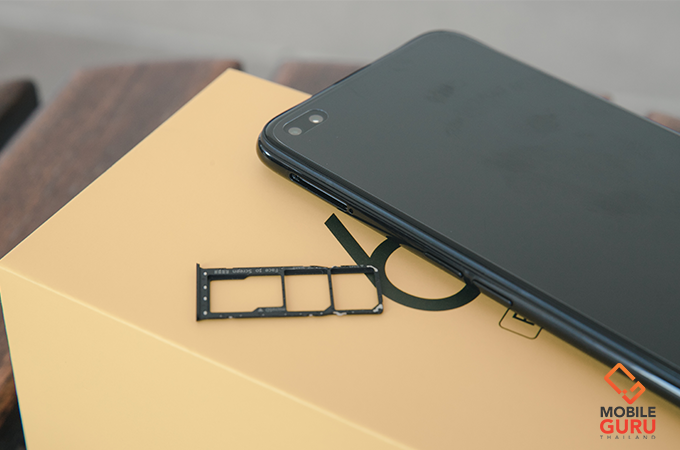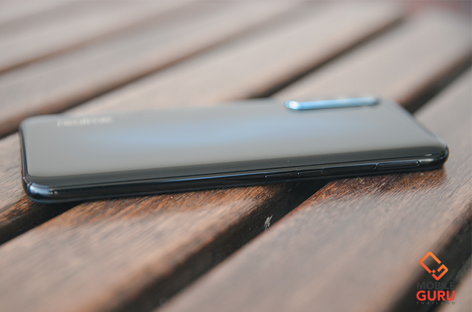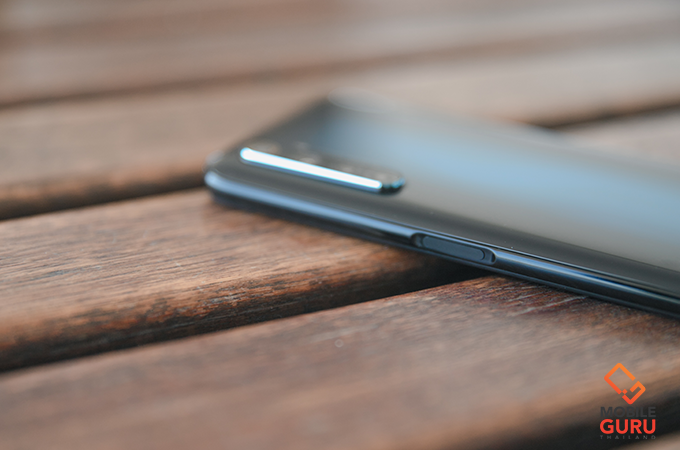 ด้านขวาตัวเครื่อง มีปุ่มกดเปิด-ปิด ตัวเครื่อง (Power) ที่มีความพิเศษตรงที่ทางเรียลมี ได้ดีไซน์ปุ่มให้แบนราบ เพื่อใช้สำหรับเป็นระบบสแกนนิ้วมือในตัวได้ด้วย ดังนั้นระบบสแกนนิ้วมือของรุ่นนี้จะอยู่ตรงปุ่ม Power ซึ่งส่วนตัวถูกใจเลยล่ะ เพราะใช้งานง่าย และรวดเร็วมาก 'แตะเป็นปลด' ก็ว่าได้