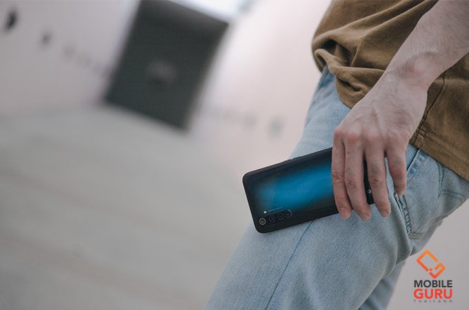 ด้านหลังตัวเครื่อง นอกจากมาพร้อมลวดลายพิเศษตามที่เกริ่นไปแล้ว ยังมีกล้องถ่ายรูป Quad camera ความละเอียด 64+12+8+2 ล้านพิกเซล (Wide + Telephoto + Ultrawide + Macro) ติดตั้งมาให้พร้อมไฟแฟลช LED ด้วย