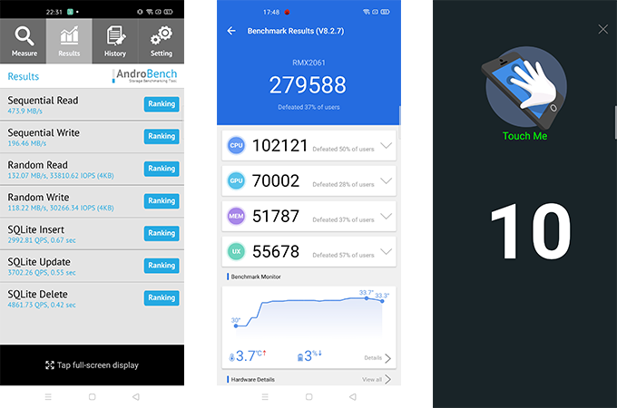- ทดสอบด้วย Antutu Benchmark ได้คะแนน 279,588 คะแนน
