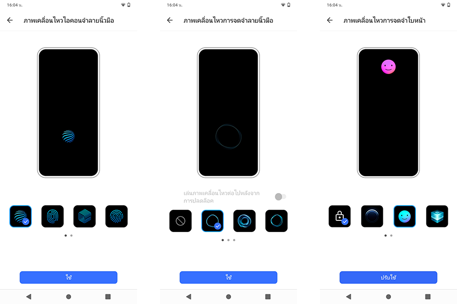 ความปลอดภัยต่อข้อมูลบนเครื่องด้วยระบบสแกนนิ้วมือบนหน้าจอแสดงผล สแกนได้เร็วและปรับลูกเล่นเอฟเฟ็กต์ได้ด้วย น่ารักและไม่เบื่อดีนะผมว่า
