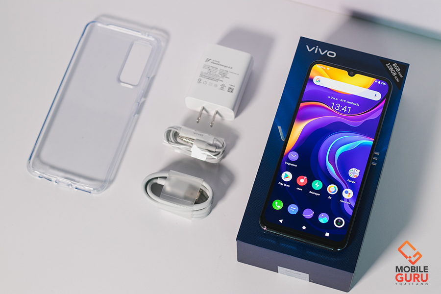 กล่องของ Vivo V20 SE ยังคงใช้คอนเซ็ปต์และโทนสีน้ำเงิน พร้อมกับลวดลายหน้ากล่องที่เหมือนกับรุ่นพี่ V20 Series ทั้งสองรุ่นทุกประการเลยล่ะครับ จะแตกต่างกันตรงข้อความหน้ากล่องที่ระบุชื่อรุ่นเท่านั้น ซึ่งดูเป็นครอบครัวดีนะผมว่าใช้สไตล์ออกแบบกล่องเหมือนกันทั้งไลน์อัปเลย ในขณะที่ด้านในกล่อง เมื่อเปิดฝาขึ้นมาก็พบกับอุปกรณ์ใช้งานพื้นฐานมาให้ดังนี้