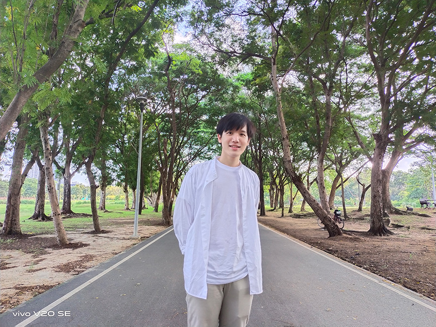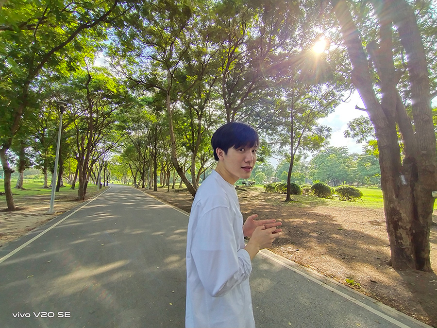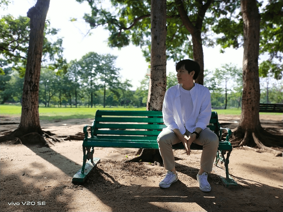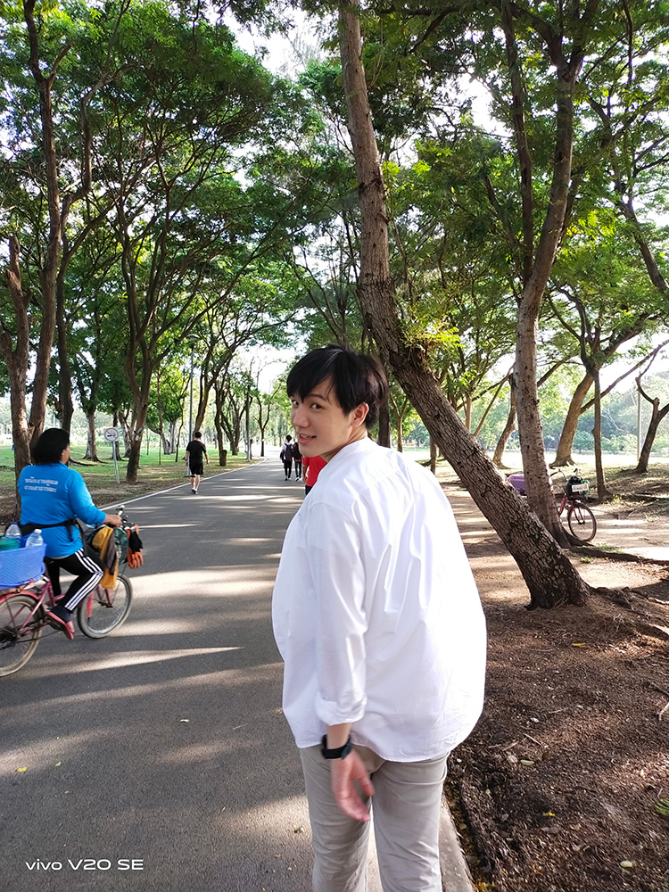 ซึ่งสไตล์ภาพที่ได้หลังกล้องจะมีความคล้ายกับ Vivo V20 อยู่เหมือนกัน สไตล์และโทนสีของภาพจะออกไปแนวสีสันสดใส สามารถจบหลังกล้องโพสขึ้นโซเชี่ยลได้เลย แต่ถ้าใครที่ชอบแต่งภาพด้วยตัวเอง ผมว่าอาจจะไม่ชอบกันนะ เพราะตัวซอฟต์แวร์ AI มีการเพิ่มไดนามิกของสีบนวัตถุขึ้นจากเดิม ทำให้ภาพดูสดสวยในยามที่ถ่ายภาพกลางแจ้ง ทำให้ปรับแต่งสีได้ยากอยู่ แต่ถ้าใครชอบถ่าย Portrait ที่มีพื้นหลังเป็นธรรมชาติและชอบกดถ่ายออโต้ ผมว่าน่าจะหลงรักเลยล่ะ ในขณะที่การถ่ายภาพในยามค่ำคืนหรือในที่แสงน้อยก็ทำออกมาได้ดีเช่นกัน เพียงแต่อาจจะมีข้อจำกัดอยู่บ้าง เพราะถ้าเจอสภาพแวดล้อมที่มืดมากๆ ประมาณ 80% ขึ้นไป หรือมีไฟสาดเข้ามาช่วยน้อยจนเหมือนไม่มีเลยกล้องของ V20 SE ก็แพ้เหมือนกัน แต่ถ้านอกนั้นเปิดโหมด Super Night ยืนถือกล้องนิ่งๆ ก็เป็นอันจบ! ได้ภาพกลางคืนสวยเลย