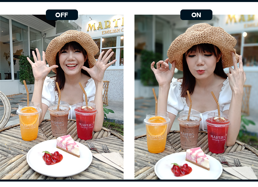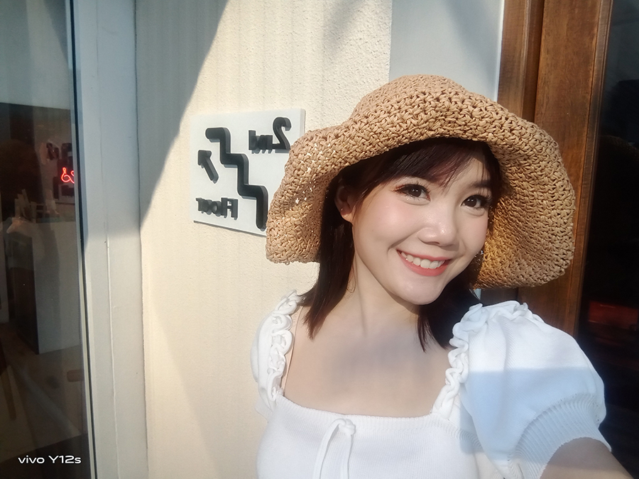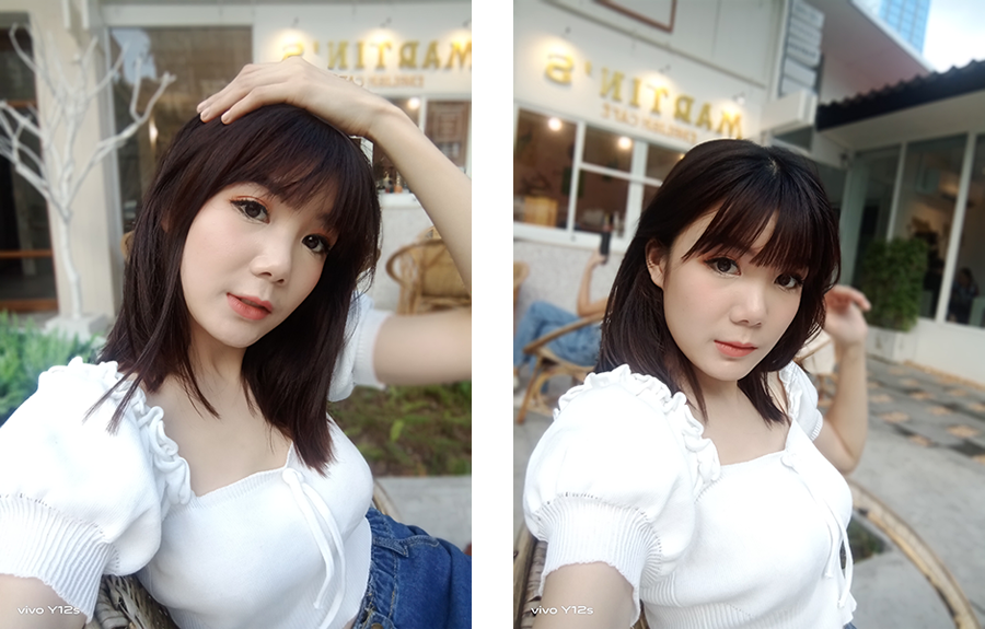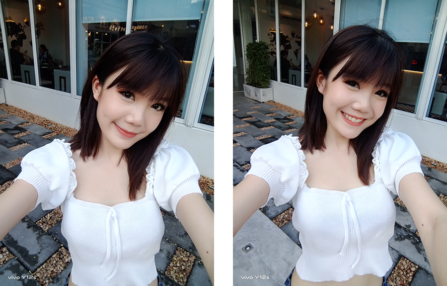 สำหรับกล้องหน้าของ Vivo Y12s นั้น มาพร้อมกับเลนส์ความละเอียด 8 ล้านพิกเซล ค่ารูรับแสงกว้าง f/1.8 รองรับ AI Face Beauty ปรับแต่งใบหน้าให้สวยเนียนเป็นธรรมชาติ สาวๆ ชอบกันแน่นอน พร้อม AI Bokeh ถ่ายเซลฟี่แบบละลายฉากหลังด้วย Software เพื่อให้ตัวแบบดูเด่นขึ้น แถมภาพที่ได้ยังดูมีมิติกว่าเดิมด้วย ส่วนเรื่องของการเก็บขอบละลายฉากหลังก็สามารถทำได้อยู่ในระดับดีเลย แม้จะไม่เนียนกริ้บ มีขาดมีเกินบ้างนิดหน่อย แต่ถ้าเสริมด้วยเทคนิคถ่ายภาพต่างๆ เข้าไป เช่น การเล่นกับแสง หรือเลือก Background ที่ดูละมุนๆ หน่อย เพื่อเสริมให้การตัดขอบภาพของระบบง่ายขึ้น ภาพที่ได้ก็แทบจะไม่ต่างกับการเซลฟี่ด้วยสมาร์ทโฟนรุ่นท็อปๆ ของวีโว่เลยละค่ะ