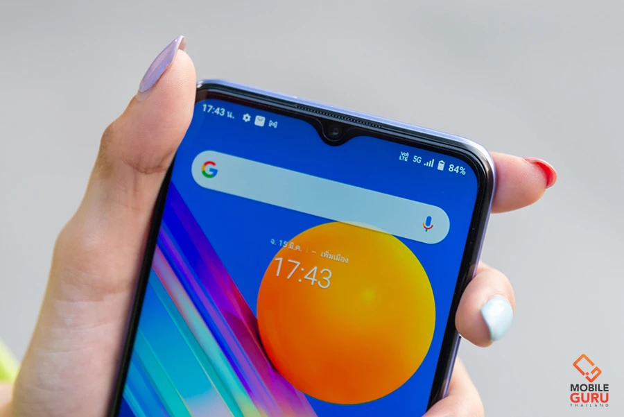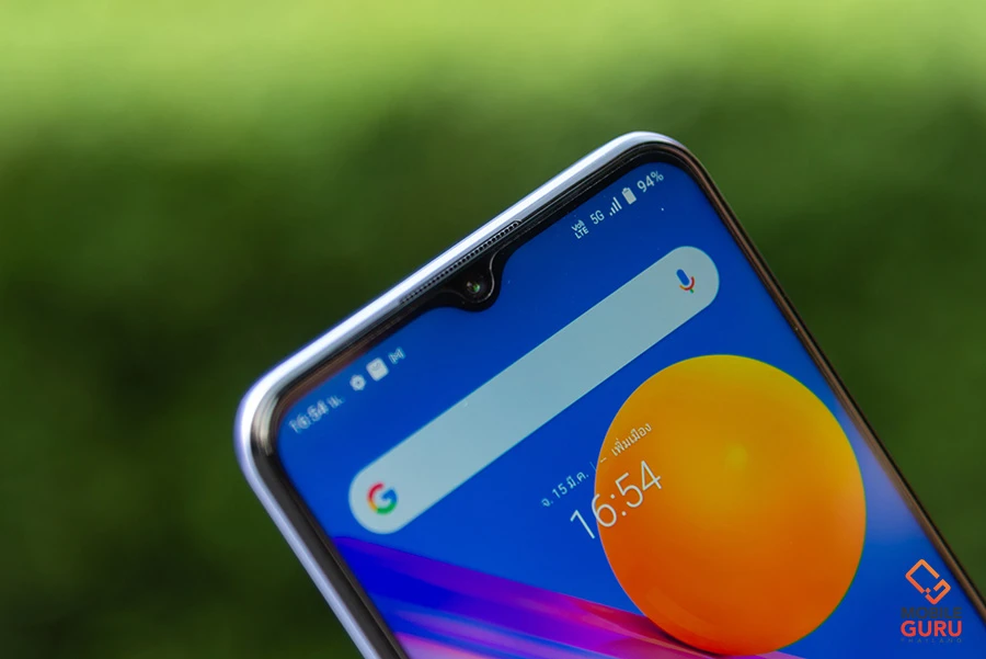 ขยับขึ้นไปตรงรอยหยดน้ำด้านบนจะเป็นตำแหน่งของกล้องหน้า ซึ่งรอบนี้ติดตั้งกล้องหน้าแบบกล้องเดี่ยวมีความละเอียดอยู่ 16MP (F2.0)