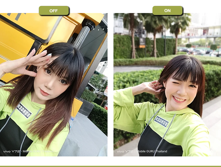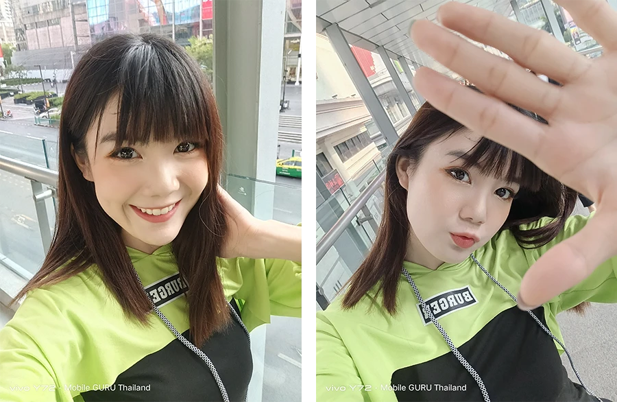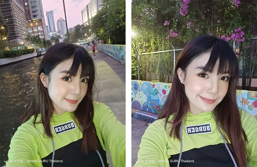ส่วนจุดเด่นของกล้องตัวนี้นอกจากเรื่องเครื่องมือในการถ่ายภาพที่วีโว่ใส่เข้ามาให้เยอะแล้ว ส่วนตัวขอยกให้การถ่ายภาพแนว Portrait ที่ตัวกล้องของ Vivo Y72 5G ทำออกมาได้ดีมาก ๆ ก็ตามสไตล์วีโว่เขาแหละ ถึงแม้จะยังมีรายละเอียดบางจุดที่ยังต้องปรับปรุงแก้ไขอยู่บ้างในเรื่องของการละลายขอบนางแบบ และการคุมแสงที่บางครั้งก็โอเวอร์ไปหน่อย แต่ถ้าเทียบกับคุณภาพในภาพรวมที่ถ่ายได้หลังกล้องถือว่า เป็นกล้องที่ดีที่สุด 1 ใน 3 รุ่นของสมาร์ตโฟน 5G ต่ำหมื่น ณ เวลานี้เลยก็ว่าได้นะ