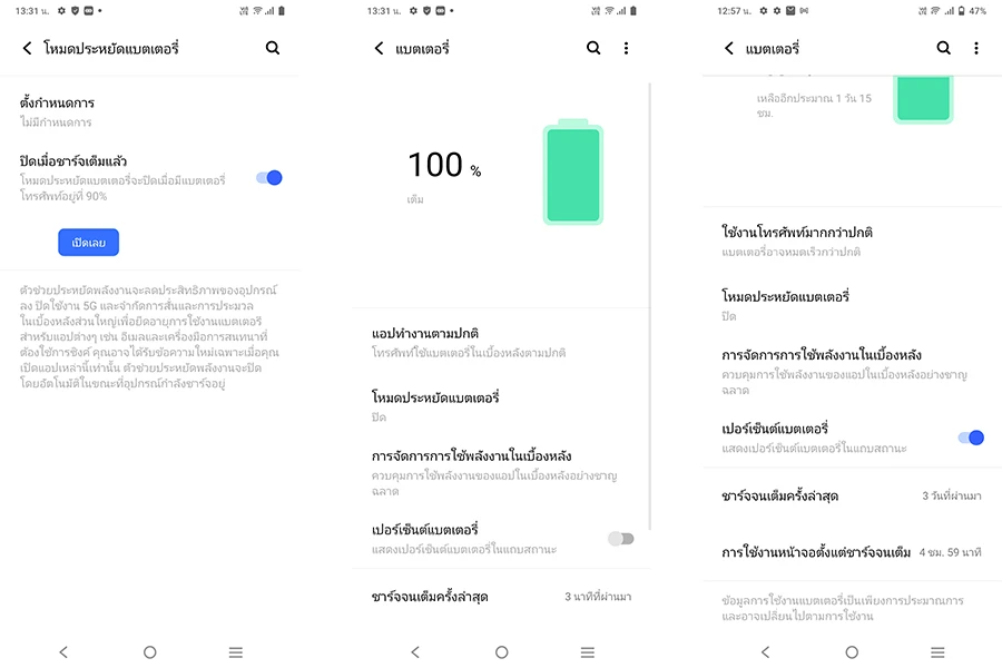 โดยส่วนตัวการได้แบตเตอรี่ขนาด 5,000 mAh มา ผมมองว่าเป็นขนาดความจุแบตเตอรี่ระดับเริ่มต้นที่เหมาะสมที่สุด ณ เวลานี้ของสมาร์ตโฟน 5G แล้วล่ะครับ ซึ่งเมื่อลองใช้งานจริงบน Vivo Y72 5G ก็เป็นไปตามที่ได้เกริ่นไว้เลย เพราะผมสามารถใช้งานตัวเครื่องด้วยพลังงานจาก 100% ในตอนเช้าก่อนออกเดินทางไปทำงาน (07.00น.) ไปจนถึงตอนเลิกงาน และเดินทางกลับบ้าน (22.00น.) ได้จนแบตเตอรี่เหลือ 5% โดยในระหว่างวันก็มีเปิดดูยูทูป ฟังเพลงออนไลน์ เล่นโซเชี่ยลบ้าง ตามไลฟ์สไตล์คนทั่วไปเลย ส่วนตัวแล้วให้ "ผ่าน" เลยนะสำหรับในด้านพลังงานกับการเป็นสมาร์ตโฟน 5G ของ Vivo Y72 5G