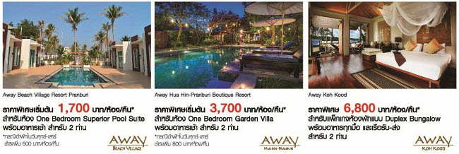 1. โปรโมชั่นห้องพักราคาพิเศษเริ่มต้น 1,700 บาท เมื่อสำรองห้องพักกับโรงแรมในเครือ Bespoke Hospitality Management Asia ที่เว็บไซต์ www.AwayResort.com