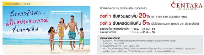 2. Centara Summer Holiday จองโรงแรมในเครือเซ็นทารา รับสิทธิพิเศษ 2 ต่อ