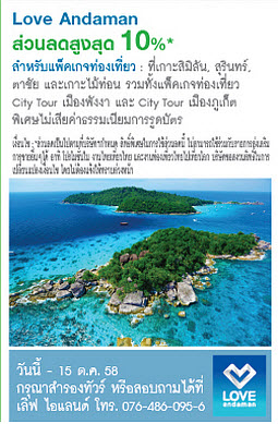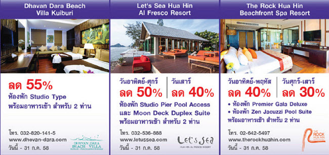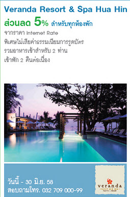 2. โปรโมชั่นส่วนลด 10% สำหรับแพคเกจท่องเที่ยวอันดามัน และส่วนลด 5% สำหรับจองห้องพักที่ Veranda Resort & Spa Hua Hin
