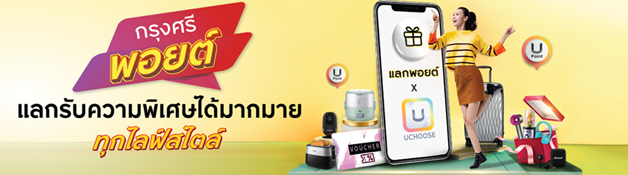 - ปัจจุบันยังไม่มีช่องทางแลกคะแนนสะสมแบบออนไลน์ แต่มีบริการเช็คแต้มสะสมผ่านแอปฯ UCHOOSE ได้