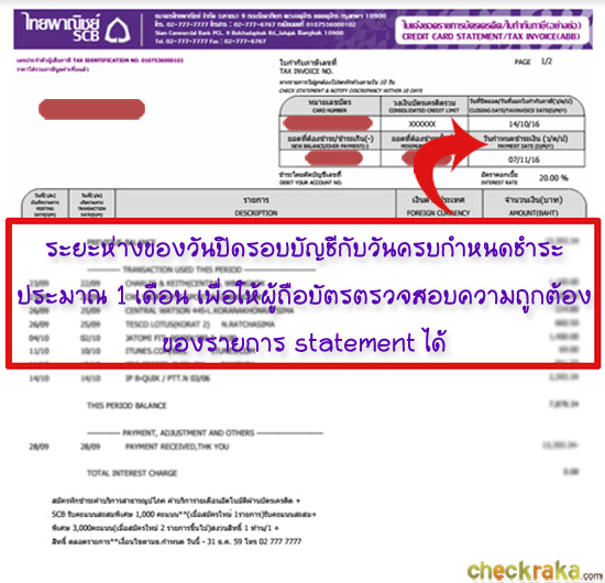ปกติทางธนาคารจะจัดส่งใบแจ้งยอดการใช้บัตรเครดิต (Statement) มาให้เราล่วงหน้า ก่อนถึงวันครบกำหนดชำระเงินไม่น้อยกว่า 10 วันทำการ หรือหลังวันปิดรอบบัญชีประมาณ 2 - 3 วันทำการ เพื่อให้เราตรวจสอบรายการใช้จ่ายและยอดเงินที่ต้องชำระว่าถูกต้องมั้ย ถ้าพบว่ามีรายการใดรายการหนึ่งไม่ถูกต้อง จะต้องรีบแจ้งไปยังธนาคารทันทีภายใน 10 วัน นับตั้งแต่วันที่ได้รับใบแจ้งยอดของรอบบัญชีนั้น แต่ถ้าหากเกิน 10 วันไปแล้ว พบรายการที่ไม่ถูกต้อง หรือเราอาจไม่ได้เป็นคนใช้จ่ายในรายการนั้นๆ จะต้องรีบแจ้งไปที่ธนาคารภายใน 60 วัน นับตั้งแต่วันที่ได้รับ Statement เช่นกัน โดยธนาคารได้กำหนดช่องทางในการรับใบแจ้งยอดบัตรเครดิตไว้ 2 ช่องทาง คือ ทางไปรษณีย์ และทาง e-mail ซึ่งส่วนตัวแล้วผู้เขียนคิดว่า การรับ Statement ผ่านทาง e-mail นั้นค่อนข้างเร็วกว่าการรับเอกสารทางไปรษณีย์ ทำให้เราตรวจสอบความถูกต้องของรายการได้ทันที วิธีนี้ก็จะช่วยลดความเสี่ยงในการรับใบแจ้งยอดล่าช้า จะได้ไม่ต้องเสียค่าปรับและดอกเบี้ยรายวันค่ะ