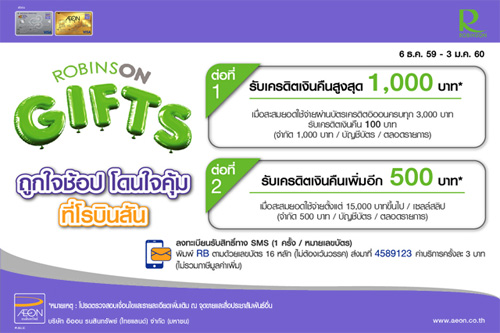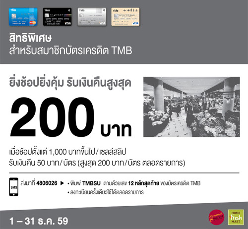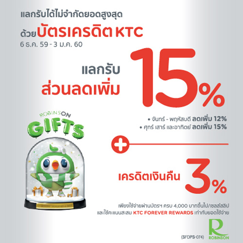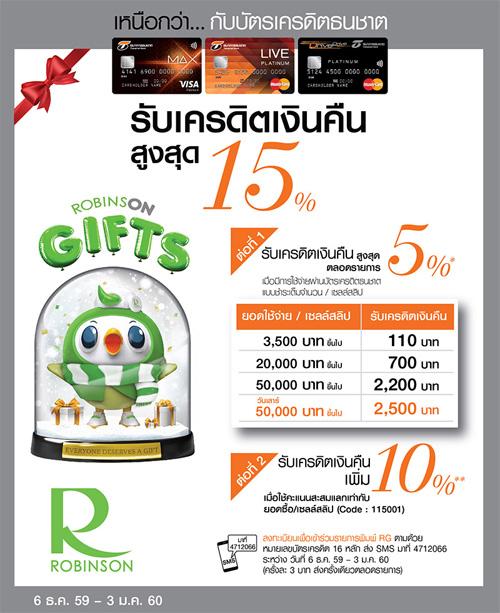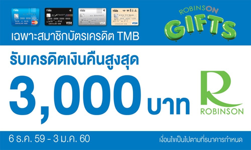 ![]() TMB | ![]() สถานที่ร่วมรายการ : โรบินสันทุกสาขา ระยะเวลาโปรโมชั่น : วันนี้ - 3 ม.ค. 60 |