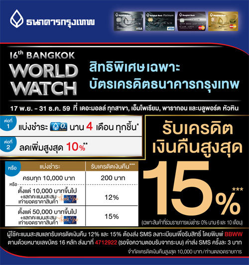 ![]() BBL | ![]() สถานที่ร่วมรายการ : เดอะมอลล์ ทุกสาขา, เอ็มโพเรียม, พารากอน และบลูพอร์ต หัวหิน ระยะเวลาโปรโมชั่น : วันที่ 17 พ.ย. - 31 ธ.ค. 59 |