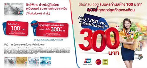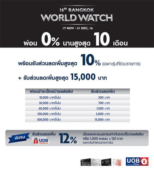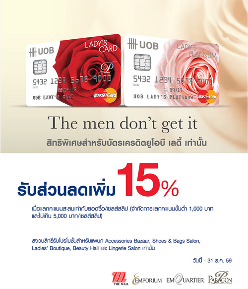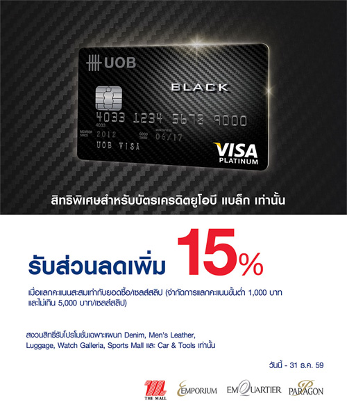 ![]() UOB | ![]() สถานที่ร่วมรายการ : เดอะมอลล์, เอ็มโพเรียม, เอ็มควอเทียร์, พารากอน และบลูพอร์ต ระยะเวลาโปรโมชั่น : วันนี้ - 31 ธ.ค. 59 |