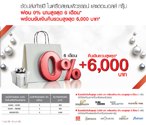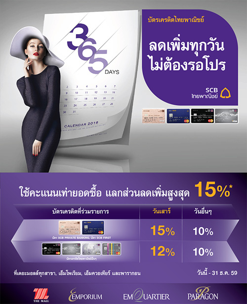 ![]() SCB | ![]() สถานที่ร่วมรายการ : เดอะมอลล์, เอ็มโพเรียม, เอ็มควอเทียร์ และพารากอน ระยะเวลาโปรโมชั่น : วันนี้ - 31 ธ.ค. 59 |