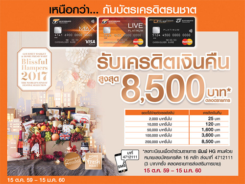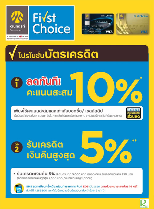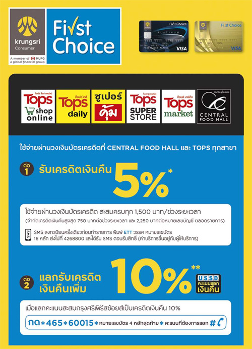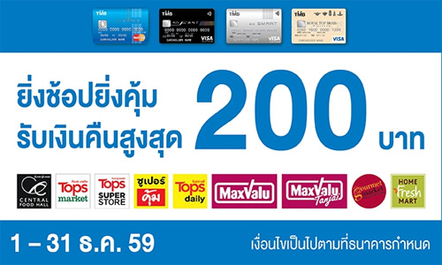 - ข้อมูลโปรโมชั่นอาจมีการเปลี่ยนแปลงตามระยะเวลา ผู้ถือบัตรเครดิตควรสอบถามรายละเอียดเพิ่มเติม ณ ร้านค้าที่ร่วมรายการก่อนเสมอ