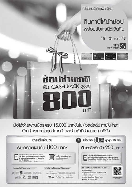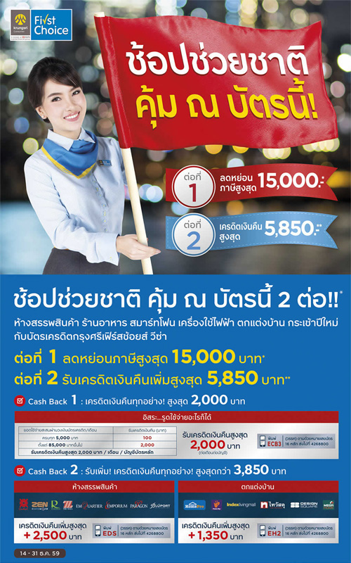 "ช้อปช่วยชาติ 2559" งานคืนภาษี ส่งความสุขท้ายปี ผ่านบัตรเครดิต ที่ศูนย์การค้าและห้างฯ ชั้นนำ