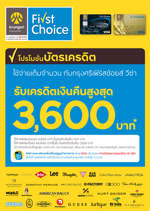 ![]() First Choice | ![]() สถานที่ร่วมรายการ : เดอะมอลล์, เอ็มโพเรียม, เอ็มควอเทียร์, พารากอน และบลูพอร์ต ระยะเวลาโปรโมชั่น : วันนี้ - 31 ธ.ค. 59 |