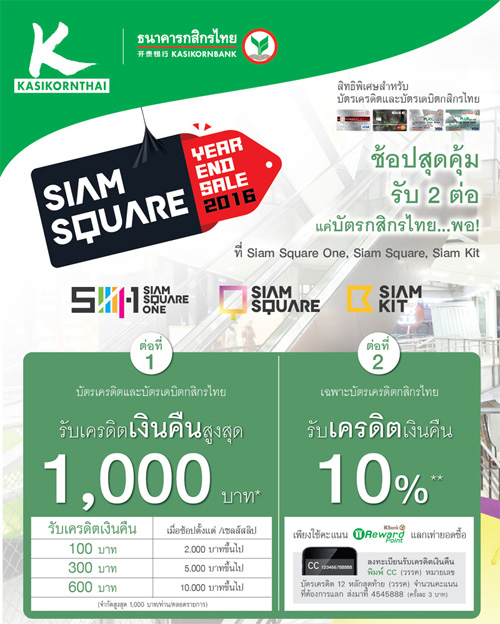 ![]() สถานที่ร่วมรายการ : Siam Square One, Siam Square, Siam Kit ระยะเวลาโปรโมชั่น : วันนี้ - 15 ม.ค. 60 | |