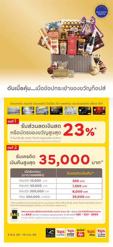 ![]() สถานที่ร่วมรายการ : เซ็นทรัล ฟู้ด ฮอลล์, ท็อปส์ มาร์เก็ต, ท็อปส์ ซูเปอร์สโตร์, ท็อปส์ เดลี่ และซูเปอร์คุ้ม ทุกสาขา ระยะเวลาโปรโมชั่น : วันนี้ - 31 ธ.ค. 59 | |