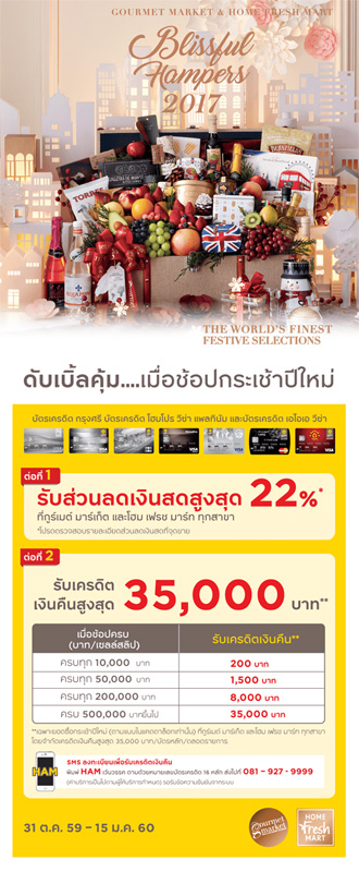 ![]() สถานที่ร่วมรายการ : Gourmet Market และ Home Fresh Mart ระยะเวลาโปรโมชั่น : วันนี้ - 31 มี.ค. 60 | |