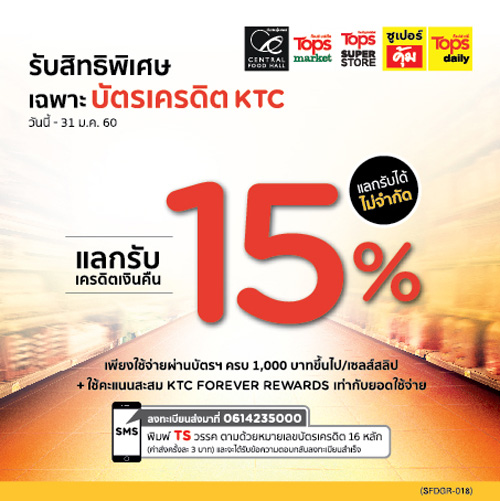 ![]() KTC | ![]() สถานที่ร่วมรายการ : เซ็นทรัล ฟู้ด ฮอลล์, ท็อปส์ และซูเปอร์คุ้ม ทุกสาขา ระยะเวลาโปรโมชั่น : วันนี้ - 15 ม.ค. 60 |