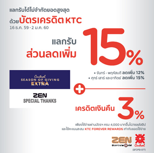 ![]() สถานที่ร่วมรายการ : เซ็นทรัลทุกสาขา และเซน ระยะเวลาโปรโมชั่น : วันนี้ - 2 ม.ค. 60 | |