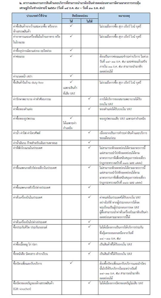 - บทความนี้จัดทำขึ้นเพื่อสนองต่อมาตรการ "ช้อปช่วยชาติ 2559" ที่รัฐบาลได้กำหนดให้สามารถนำยอดใช้จ่าย (ระหว่างวันที่ 14 - 31 ธ.ค. 59) ไปใช้ในการลดหย่อนภาษีได้ ในจำนวนเงินไม่เกิน 15,000 บาท