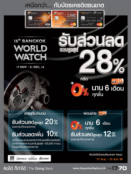 ![]() Thanachart | ![]() สถานที่ร่วมรายการ : เดอะมอลล์, เอ็มโพเรียม, เอ็มควอเทียร์, พารากอน และบลูพอร์ต ระยะเวลาโปรโมชั่น : วันนี้ - 4 ม.ค. 60 |