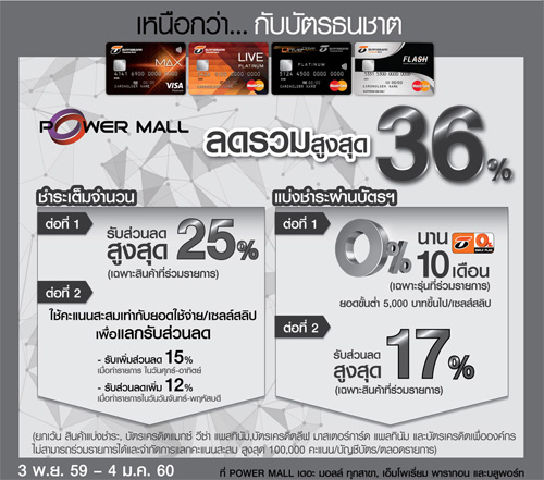 ![]() สถานที่ร่วมรายการ : เพาเวอร์มอลล์ ทุกสาขา ระยะเวลาโปรโมชั่น : วันนี้ - 4 ม.ค. 60 |